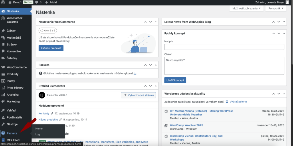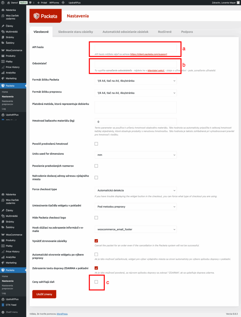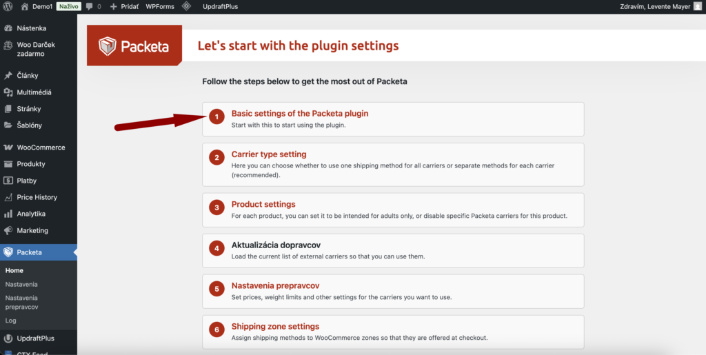 2. Kliknite na 1. moznost, konkrétne: „Basic settings of the Packeta plugin.